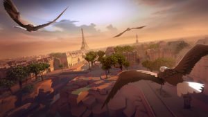Eagle Flight di Ubisoft è probabilmente uno dei primi titoli mostrati per PlayStation VR. Per chi non lo conoscesse è un gioco nel quale è possibile “vestire i panni” di un’aquila e volare su di una città nella quale circolano liberamente diverse specie animali.