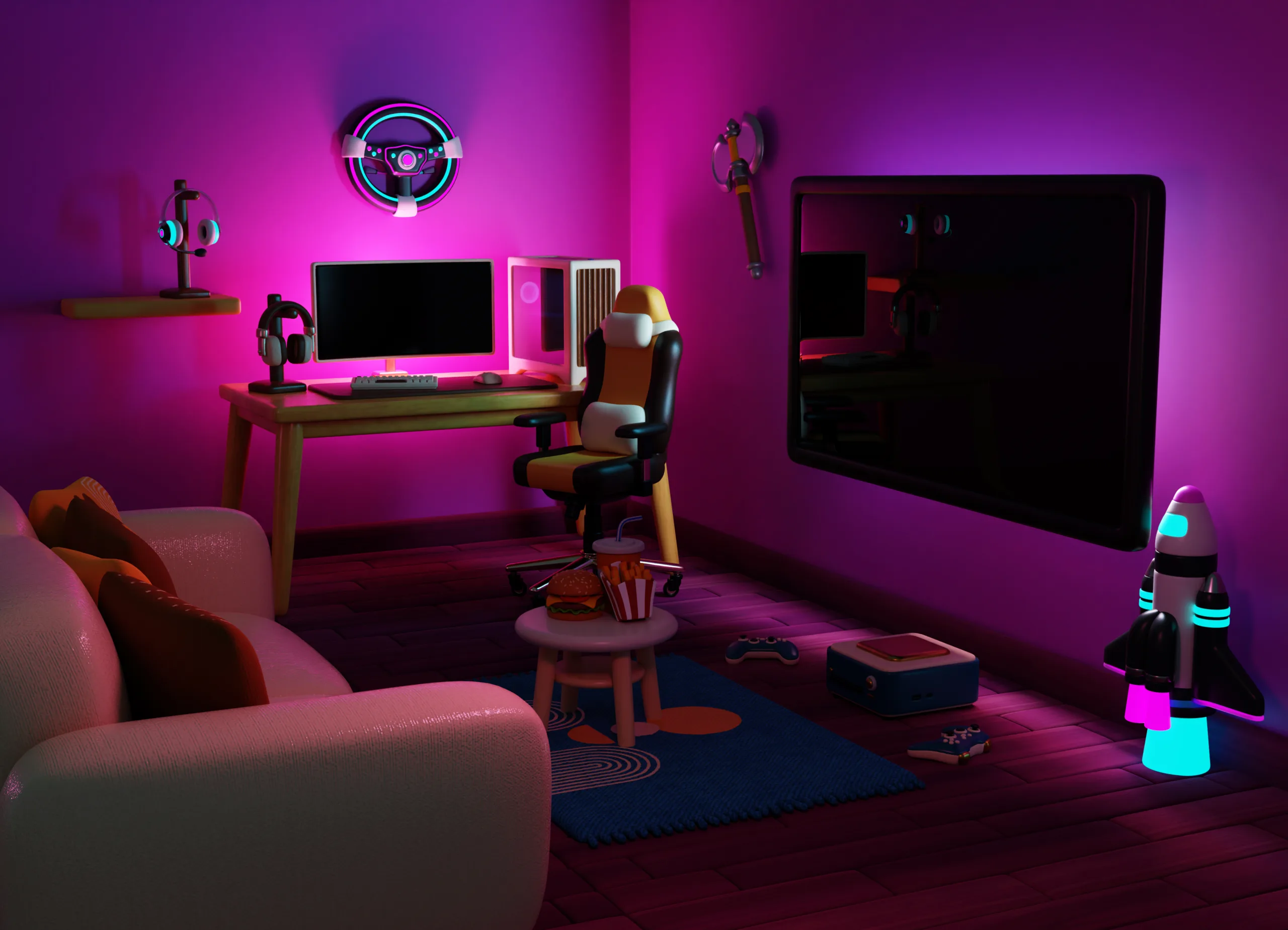 Il primo impatto che l’utente riceve collegandosi a una diretta è prettamente visivo. Lo sfondo che appare alle spalle dello streamer racconta una storia e definisce il tono della trasmissione, contribuendo a costruire il brand personale del creatore. Una parete spoglia o disordinata può trasmettere sciatteria, mentre un ambiente curato comunica professionalità e dedizione. La gestione dell’illuminazione gioca un ruolo chiave in questo contesto: l’utilizzo di luci soffuse, strisce LED RGB posizionate strategicamente o lampade direzionali (key light) permette di staccare il soggetto dallo sfondo, donando profondità all’immagine. Tuttavia, l’elemento scenico più riconoscibile e immediato, che funge da vero e proprio trono per il creatore digitale, è rappresentato dalla seduta. Le sedie da gamer non sono semplici elementi d’arredo, ma icone di stile che segnalano immediatamente l’appartenenza a una specifica cultura digitale. La loro struttura imponente e i colori spesso vivaci diventano parte integrante della scenografia, un punto focale che l’occhio dello spettatore impara a riconoscere e associare al personaggio.
