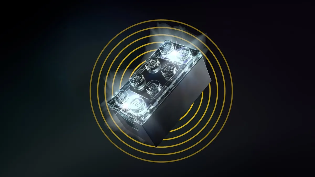 Lo smart brick è un classico mattoncino Lego 2×4, ma dotato di connettività e intelligenza artificiale. Al suo interno troviamo un chip ASIC da 4,1 millimetri, più piccolo dello stud del mattoncino.
