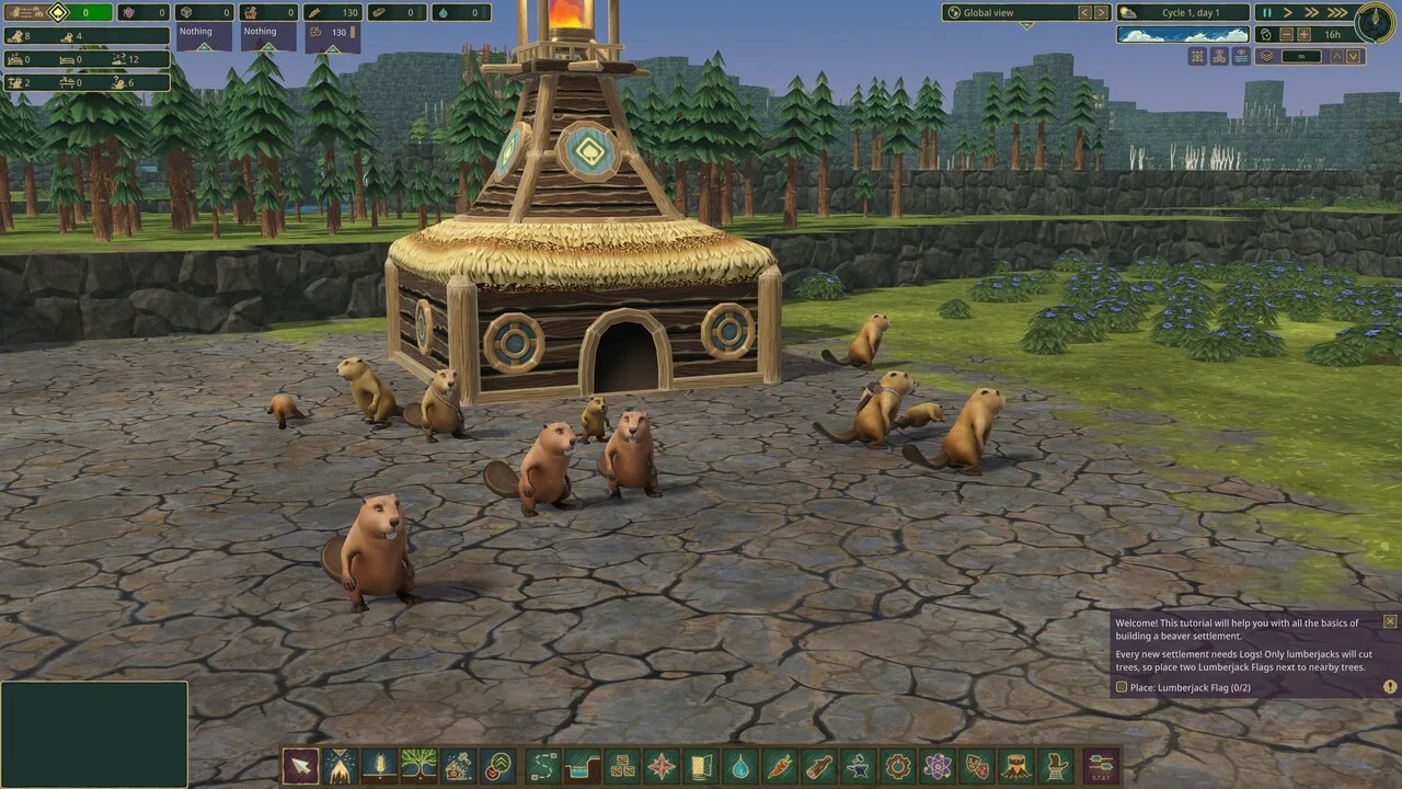 All’inizio, ti concentri sulla raccolta di cibo e materiali da costruzione. I castori sono eccellenti nell’abbattere gli alberi. Hanno anche bisogno di acqua che puoi filtrare dal fiume. Il fiume fornisce terreni fertili nelle vicinanze per terreni agricoli e la crescita del legname, e puoi generare energia dai suoi corsi d’acqua, necessaria per edifici più avanzati. Poi devi creare case, depositi e molto altro.